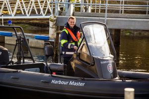 Boatyard Operative Chris Wilson in the Harbour Master’s RIB