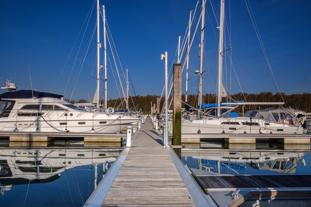 Buckler’s Hard Yacht Harbour is in a sheltered location on the Solent and you can be reassured that our team is on hand to help, as well as walking the pontoons to help prevent damage.